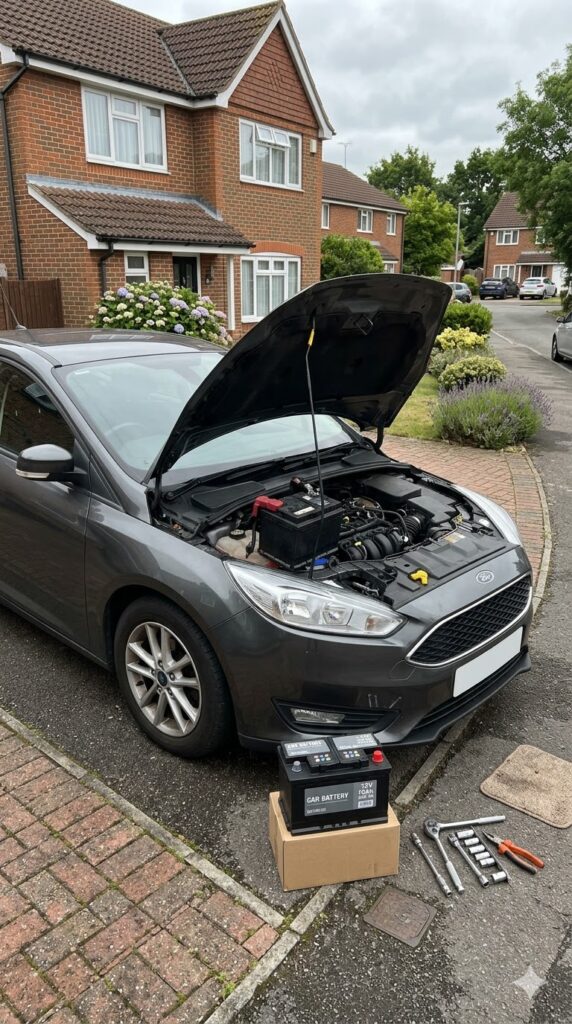 Battery replacement involves removing a worn or faulty car battery and installing a new one to restore reliable starting power.
